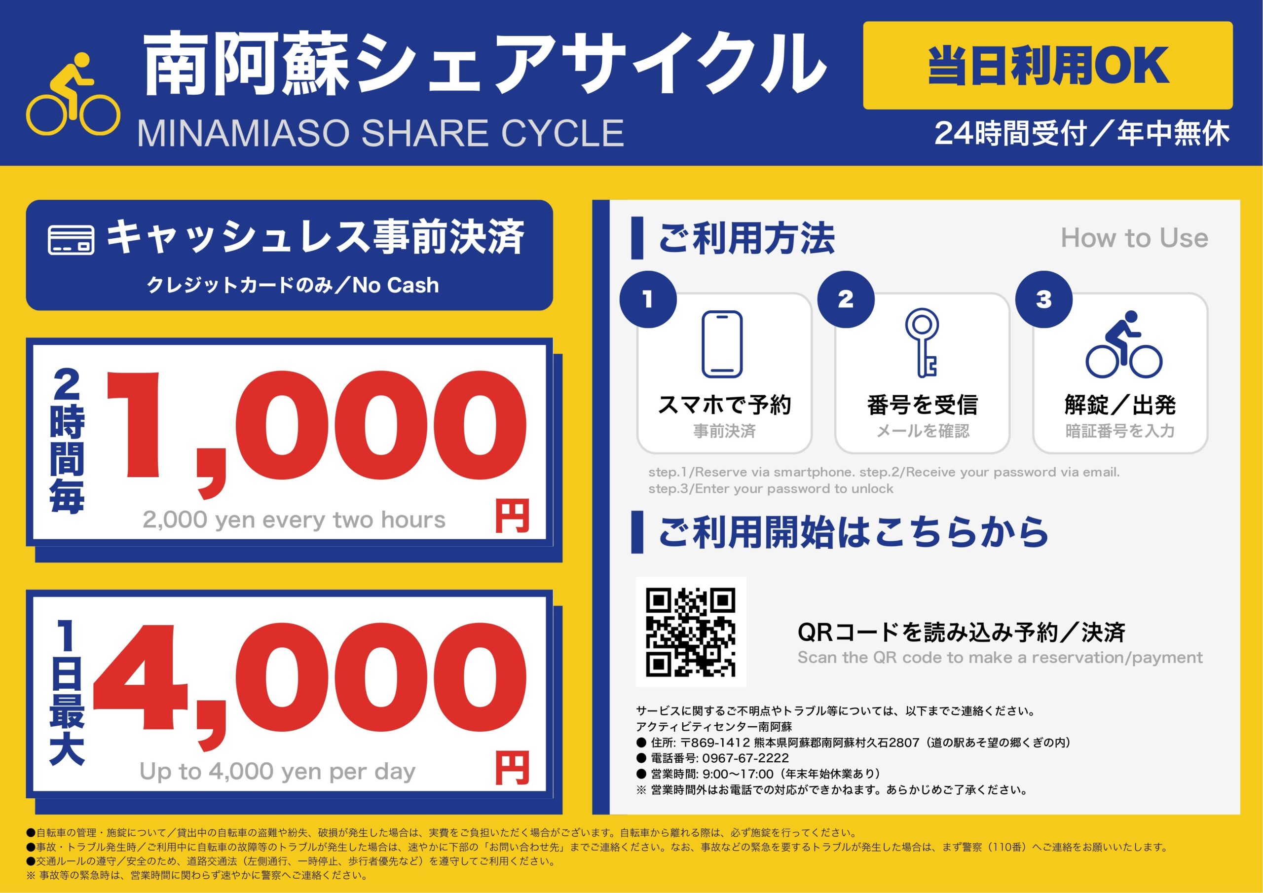 【重要】お支払いはスマートフォンからの「クレジットカード事前決済のみ」となります(現金や電子マネーはご利用いただけません)。
