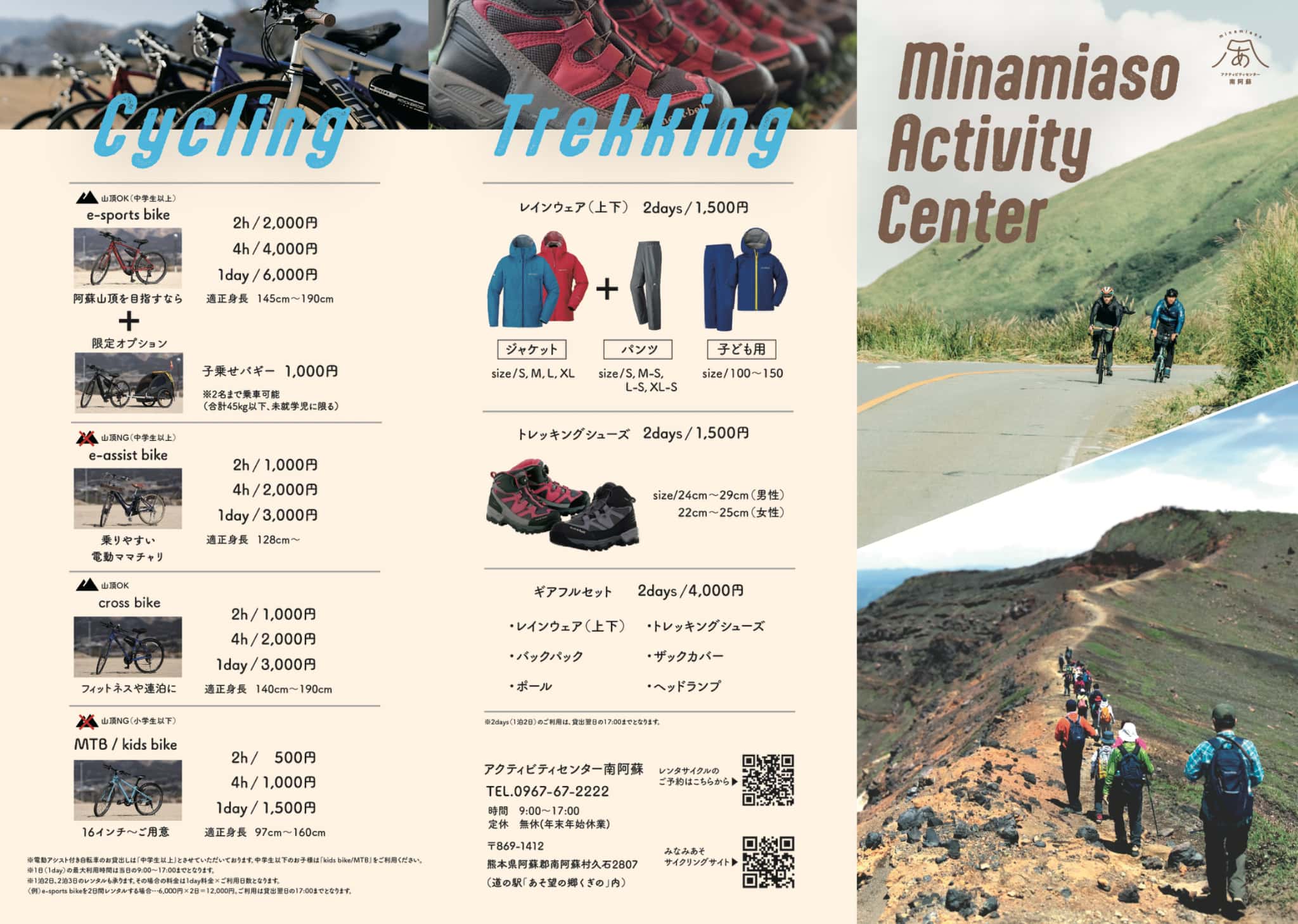 レンタル受付は道の駅「あそ望の郷くぎの」敷地内のアクティビティセンター南阿蘇までどうぞ!