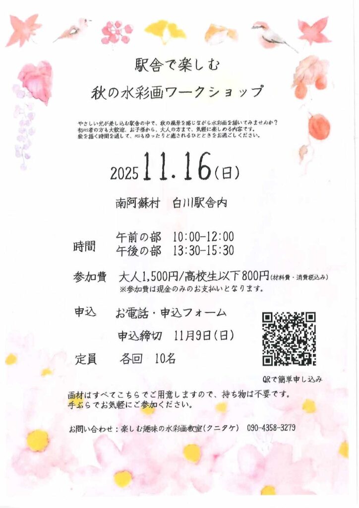 やさしい光が差し込む駅舎の中で、秋の風景を感じながら水彩画を描いてみませんか?