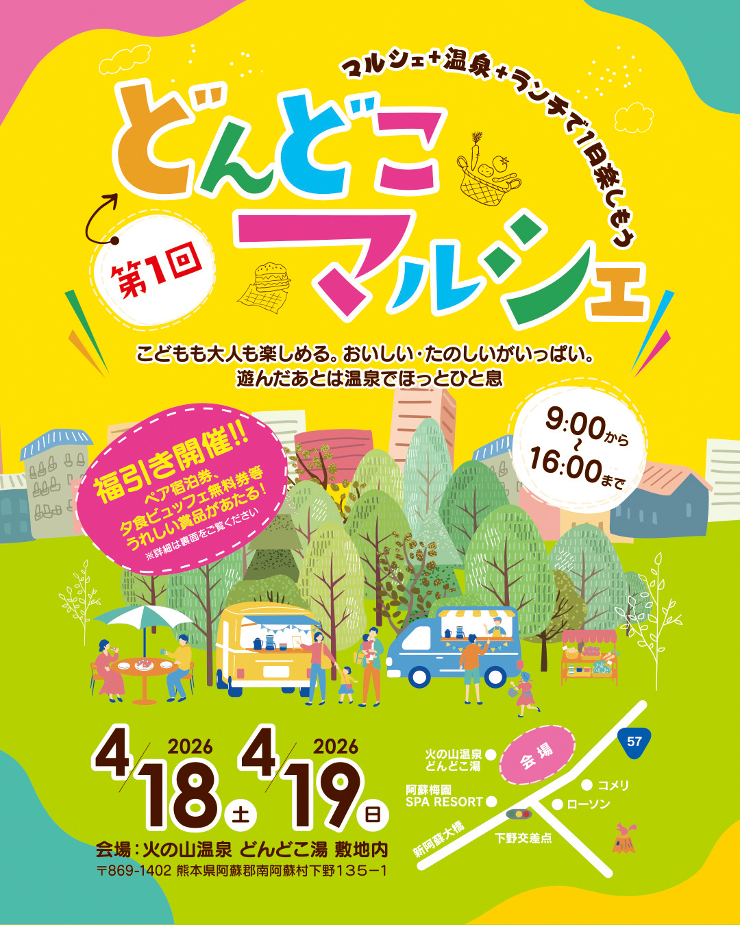 「火の山温泉どんどこ湯」でマルシェ+温泉+ランチと1日楽しめるイベントが開催!