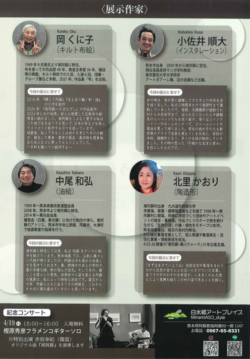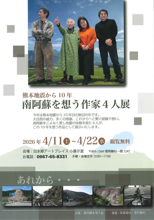 - 2026年4月11日(土)~4/22(水)、白水郷アートプレイスにて「南阿蘇を想う作家4人展」が開催されます。