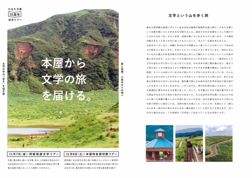 | 開催日 | ・11月7日(金)_阿蘇周遊文学ツアー ・11月8日(土)_本屋特急:阿蘇発熊本行き貸切便 ・宿泊オプションあり |