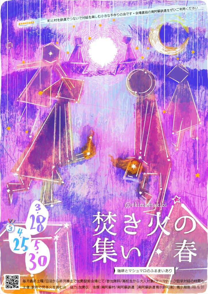 - 2026年3月28日(土)・4月25日(土)・5月30日(土)、南阿蘇鉄道 加勢駅スロープ前会場にて「焚き火の集い・春」が開催されます。