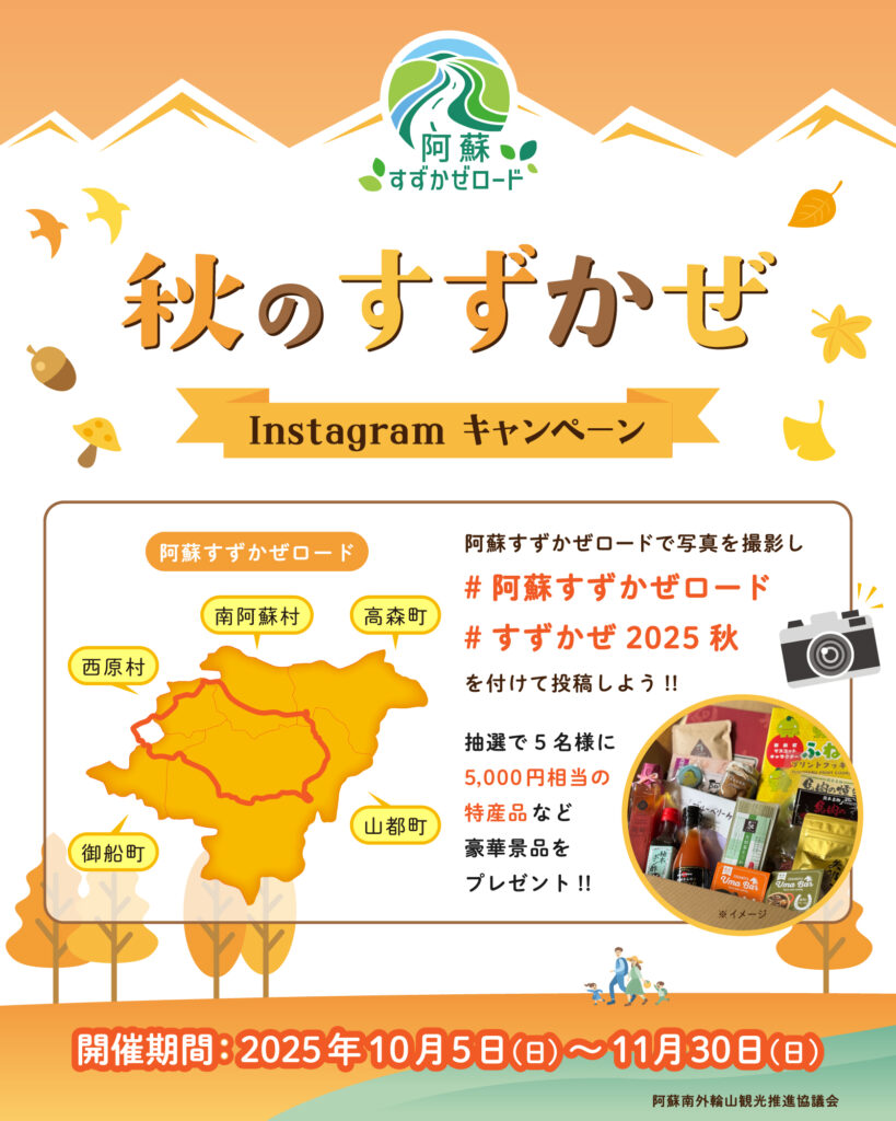 ③「#阿蘇すずかぜロード」「#すずかぜ2025秋」のハッシュタグをつけてInstagramで投稿しよう!